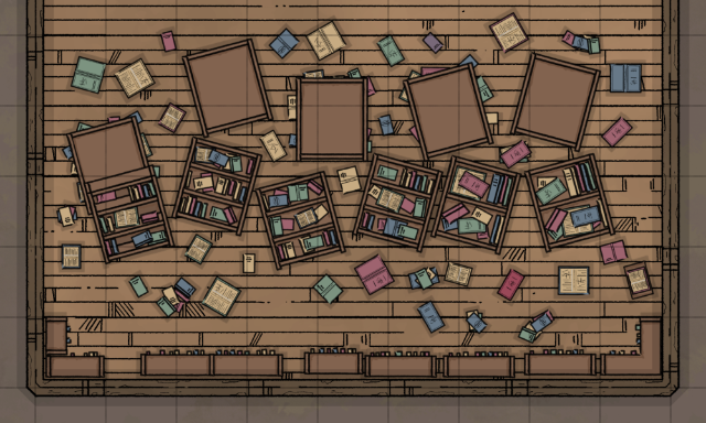 Read more about this asset...Books and shelve pushed over and standing.
