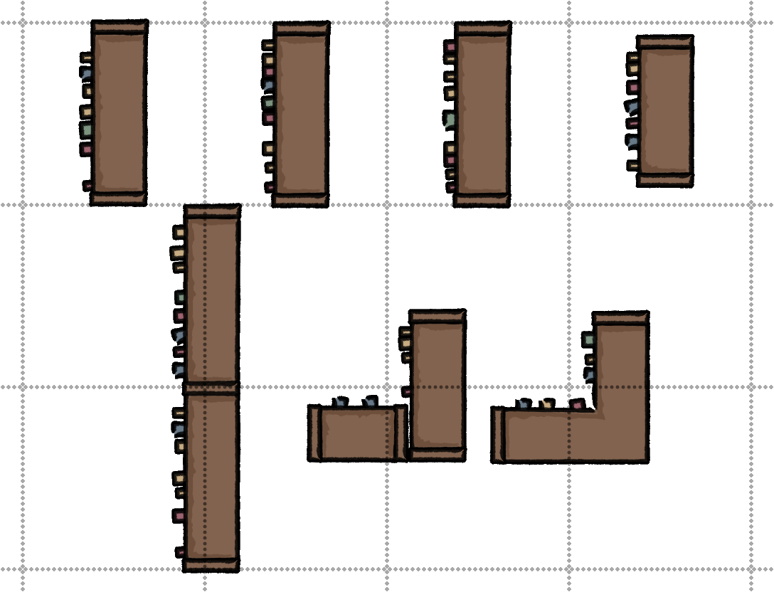 7 upright shelves